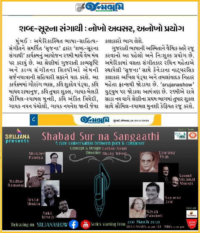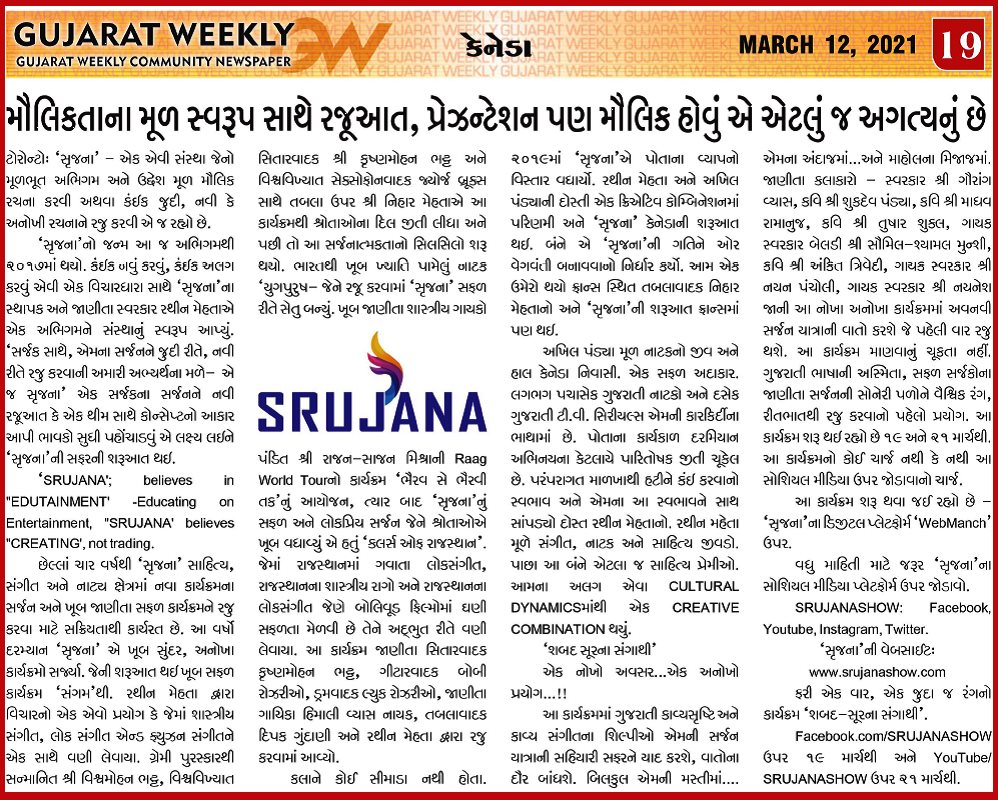 The debut home production “SANGAM-Confluence of Classical, Folk & Fusion Music”, concept and designed by Rathin Mehta for the SRUJANA banner was not just a roaring hit show, but also bagged its fair share of audience and critics appreciation.
